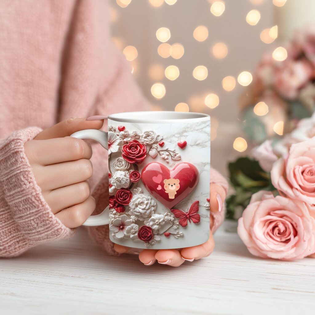 3D Flower Heart Mug - Valentine's Day Gift | Mother's Day Gift